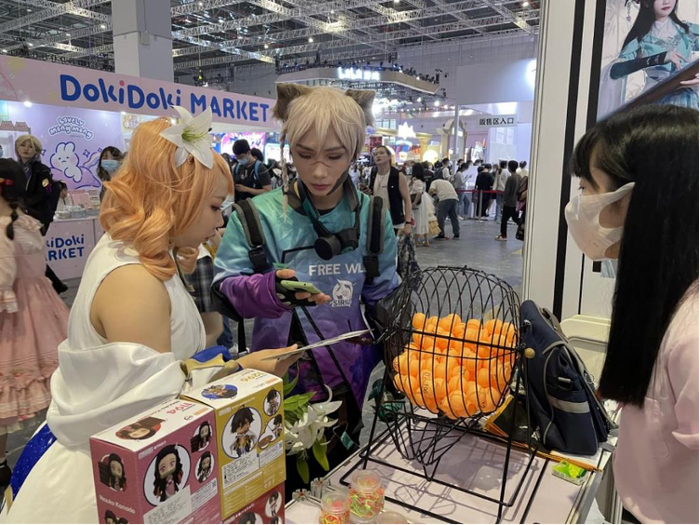 本次漫展中出现了很多全新展商,其中一款叫做“破圈”的App尤其受到现场关注,它是一个有生命力的亚文化交流社区。不少游客和创作者在摊位前下载注册、拍照打卡和参与活动。