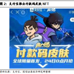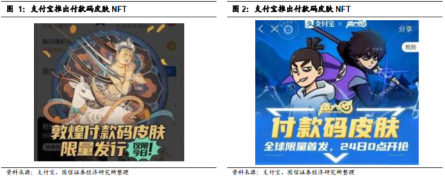 NFT全称“Non Fungoble Token”,中文为“非同质化代币”,其具有唯一性、不可分割性和不可复制。与其对应的是“同质化代币”,典型的就是人民币、美元等,虽然不同人民币的标识可能不同,但其作用是一致的,在加密货币领域,比特币也是“同质化”的。现实中电影票就是比较典型“非同质化的”,不同电影票的座位不同(唯一性)、电影票是不可分割的,同样,房子、艺术品、古董也有同样的特征。NFT的独特信息会被存储在其智能合约中,并记录在代币的区块链上,而区块链有着公开、可信、去中心化的特征。近日,支付宝与敦煌美术研究所共同推出基于两款蚂蚁链发行的付款码皮肤NFT,两款NFT各限量8000份,售价为10支付宝积分+9.9元。