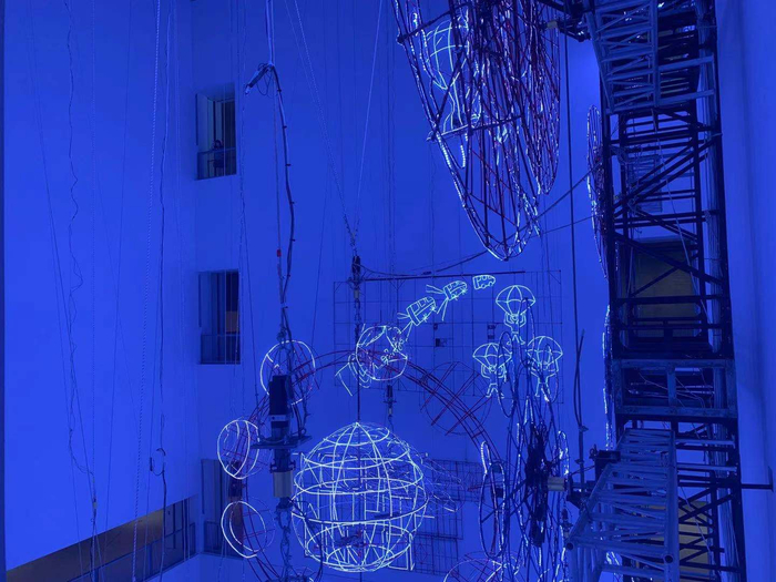 在美术馆不同楼层,看X展厅蔡国强奇观装置