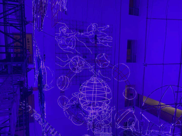 浦东美术馆与蔡国强的相识源于2018年,当时陆家嘴集团的团队带着美术馆的效果图,到纽约拜访蔡国强。在互相磨合中,在中央展厅出了3个方案,对中央展厅的布展,直至前天才结束。