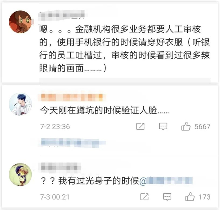 同时,部分网友对此发出质疑,认为平台方应提醒用户“人脸识别系统后台人工审核时,可以看到摄像头全景”。