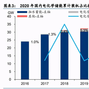 电化学储能适用场景丰富,新能源配储带动储能需求提升。电化学储能在电网侧和用户侧 早已有应用,受储能项目经济性影响和以火电为主的能源结构影响,电化学储能在储能装 机占比仍处于低位。随着场景逐步丰富,电化学储能规模及占比持续提升,截至 2020 年,全球电化学储能累计装机 14.2GW(同比+49.2%),占储能系统装机 的 7.4%;国内电化学储能累计装机 3.27GW(同比+91.2%),占整体储能的 9.2%。值得注 意的是,20 年我国新增电化学储能装机达 1.56GW(同比+145%),配储政策释放储能需求, 国内新增储能装机首次突破 GW 大关。