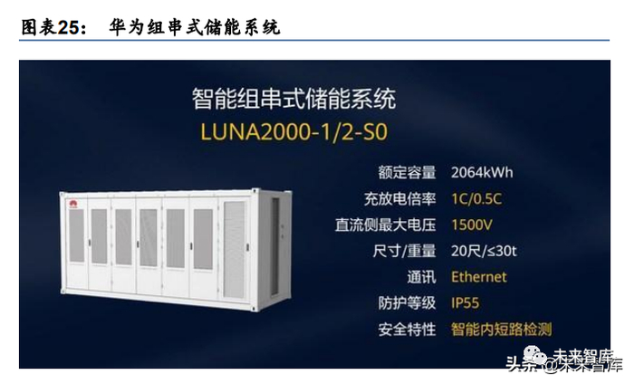 系统保护和 BMS 优化,助力提升系统使用寿命。动力电池多年发展为储能产业链奠定了良 好基础,储能系统的针对性的设计进一步带动储能普及。比亚迪、宁德时代等厂商针对储 能系统推出液冷产品(BYD CubeT28、CATL EnerOne 等),增加储能电池的保护措施,科 工针对电池管理系统的三级架构逐步推广(单体电池管理模块(BMU)、电池组管理模块 (BCMU)、电池系统管理模块(BAMS)),华为针对电池组推出组串式储能系统,解决电池模 组串联失配、电池簇间并联失配、电池温升差异等问题,协助增加储能系统寿命。