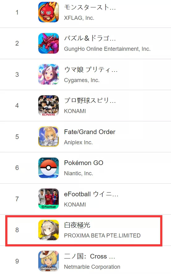腾讯的《白夜极光》在日韩上线快半个月了,首日两国免费榜双冠,日服不到10天注册人数破500万,畅销榜最高排名到过日本第8、韩国第7,如今日韩服仍稳定在畅销榜前30。需要注意的是,这款游戏还并没有开启它的第一个活动期,也没有迎来它真正的发力期。