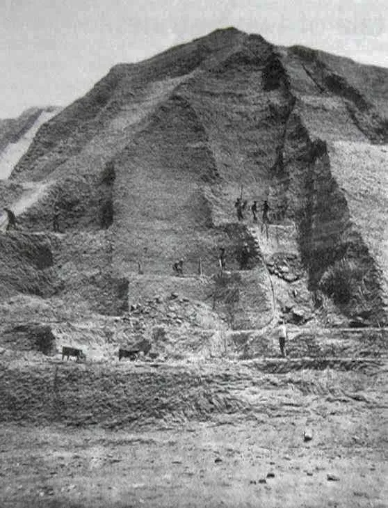 在秘鲁中部海岸的钦查群岛开采的海鸟粪矿。摄于1860年。 Wikimedia 图