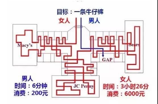 举个简单的例子,女性往往把逛街作为主要事项,买一件衣服要货比N家,与其说是买衣服,不如说是逛街休闲。而男性则是直接消费,目的性优先级最高,看准目标,付款走人。