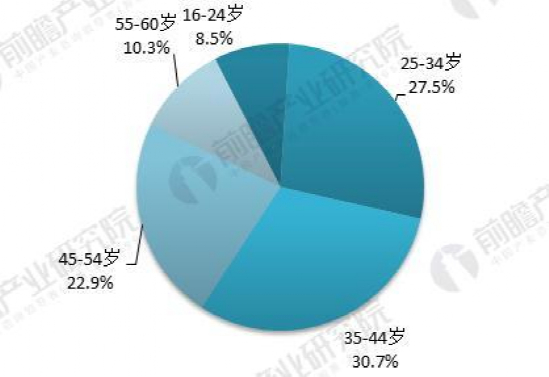 根据前瞻产业研究院发布的《2018—2023年中国白酒行业市场需求与投资战略规划分析报告》显示,在白酒重度消费群体中,35-44岁的人占比最高为30.7%,45-54岁的群体占比为22.9%,总体来看,35岁+的中年群体占比最大。