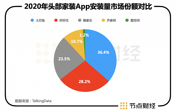然而,经历野蛮生长的群核科技市场份额还有待提升,根据艾瑞咨询数据,以2020年收入衡量,其市场份额为10.3%。此外,据TalkingData报告显示,2020年家装APP安装量市场份额中土巴兔居于首位,占比为36.4%,其次为好好住,占比为28.2%,酷家乐位居第三,占比为23.5%。