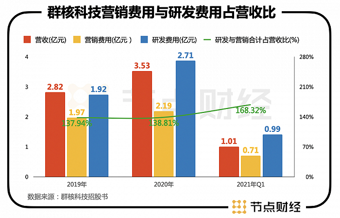 据招股书显示,2019年至2021年一季度,群核科技分别实现营业收入2.82亿元、3.53亿元、1.01亿元,后两期同比增幅达25.19%、33.32%。但其却增收不增利,同期实现净利润分别为-2.61亿元、-2.97亿元、-1.17亿元,且今年一个季度,其亏损额是去年同期的2倍多,意味着亏损迅速扩大。