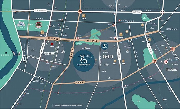 仁恒城市星光位于雨花台区软件大道与武宁路交汇处,紧邻河西、南站等城市热点板块,共有G59、G60两个地块,楼面地价分别19389元/㎡、17376元/㎡,共打造24栋楼,户型约74-165㎡。