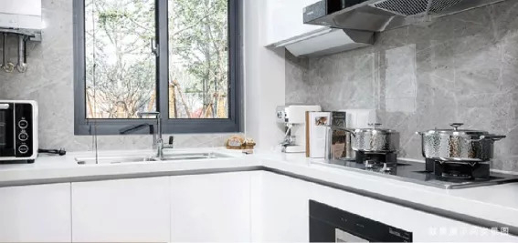 项目为精装交付,配置也不错,采用了仁恒第5代成品研发体系,全屋配备中央空调、全热交换除霾新风系统、地暖、前置过滤器等,还采用了菲斯曼壁挂炉、TOTO的整体洁具、弗兰林卡水槽、西门子燃气灶、科勒消毒柜、高仪五金龙头等,就连电视背景墙、全屋墙纸、主卧衣柜、阳台台盆柜体都在交付标准内。