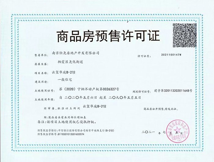 恒大云玺华庭已于7月5日新领B2号楼销许,7月6日开启报名,共计108套房源(其中33套优先供应人才,33套优先提供给无住房保障家庭),销许价格30500元/㎡,精装修交付,拟交付时间为2024年5月31日。