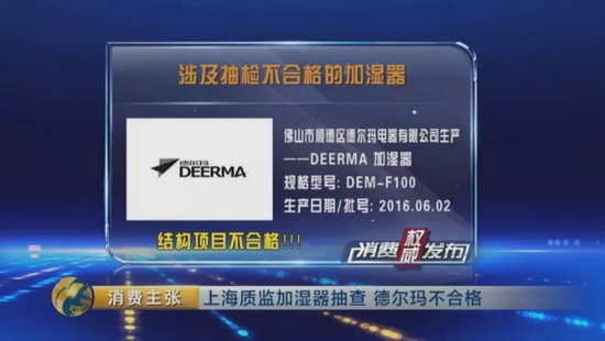 据央视“消费主张”栏目报道,2017年,上海市质量技术监督局对上海市生产和销售的加湿器产品质量进行了专项监督抽查。其中,佛山市顺德区德尔玛电器有限公司生产的德尔玛加湿器,结构项目不合格。