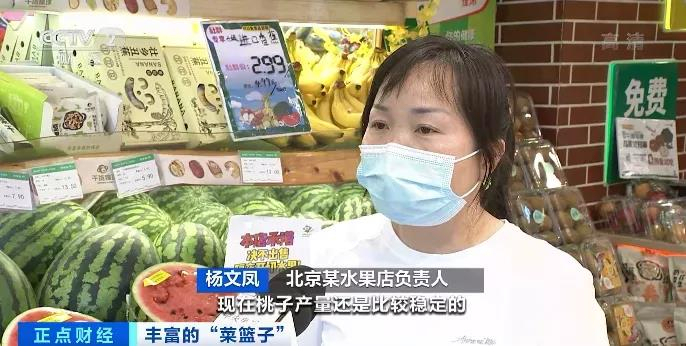 北京某水果店负责人杨文凤:北京、河北现在桃子产量还是比较稳定的。西瓜我们现在主销的麒麟瓜是以江苏的瓜为主,北京附近的像甜王西瓜,接下来产地会切换到北方。葡萄现在以浙江的巨峰为主,接下来会切换到辽宁、河北。