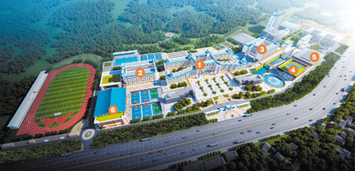 广州市第六中学从化区校区以打造一个现代化的花园式完全中学为目标,划分主要教学区、运动区、生活区、预留发展区等,形成功能分区明确、交通流线简洁、环境景观舒适、良好校园互动的组合空间。