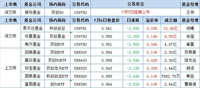 1.双创50(159782)上市,首批9只获批成立的双创50ETF今日全部完成上市