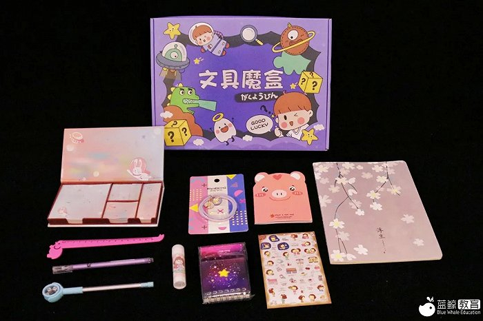 本次测评,蓝鲸教育还购买了两个较高价格区间的文具盲盒,首先开启的是来自“步一班文具专营店”成长之旅文具魔盒,单价49.8元。