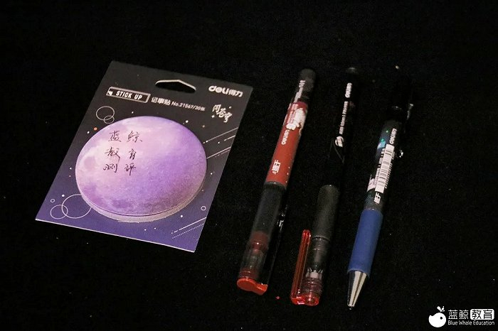 得力的这款与中国航天联名的盲袋,有大量的太空元素,整体外观设计上看起来更炫酷。内部产品包括一支“臻顺滑”的拔帽式0.5mm子弹头黑色中性笔、一支“速干”的0.5mm全针管黑色按动中性笔、一支“速干”的0.5mm全针管直液式走珠笔;一根0.35mm全针管黑色中性笔替芯、一根“速干”的0.5mm黑色按动式中性笔替芯;以及一本30页的月球记事贴。