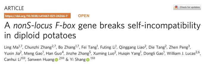 中国团队找到一把“万能钥匙”:克服马铃薯自交不亲和难题