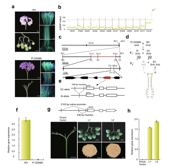 研究团队提到,马铃薯的自交不亲和是由高多态性的S位点控制的。S位点主要包括两个紧密连锁的基因,花柱特异表达的S-RNase基因和花粉特异表达的SLF(S-locus F-box)基因。