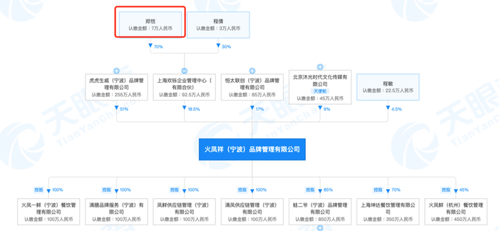 而郑恺也间接持有火凤祥品牌股份。天眼查信息显示,上海欢铄企业管理中心持有火凤祥(宁波)品牌管理有限公司18.5%股份,郑恺为上海欢铄企业管理中心最终收益人,持股70%。