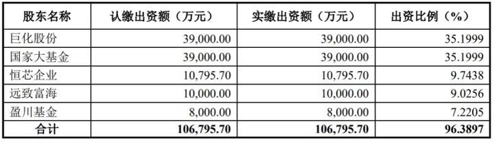 目前,中巨芯共有7名股东,前两大股东分别为巨化股份、国家大基金,持股比例均为35.1999%。