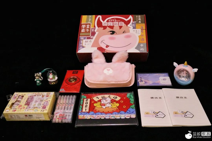 本次测评,蓝鲸教育还购买了两个较高价格区间的文具盲盒,首先开启的是来自“步一班文具专营店”成长之旅文具魔盒,单价49.8元。