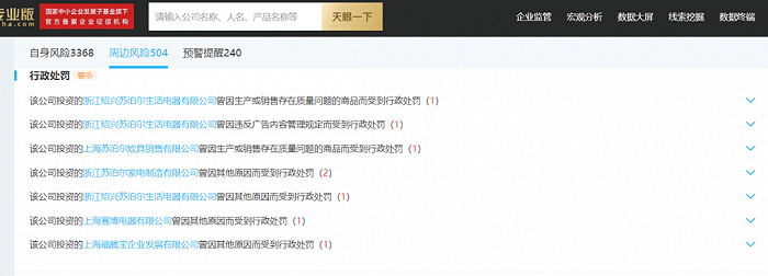 这也可以从苏泊尔自身的经营发展可以看出,据天眼查专业版APP显示,多年来苏泊尔屡次收到行政处罚。