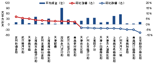 图:2021年上半年租金环比涨跌幅较大的商业街