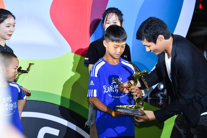前国脚李毅为常湘科颁奖。