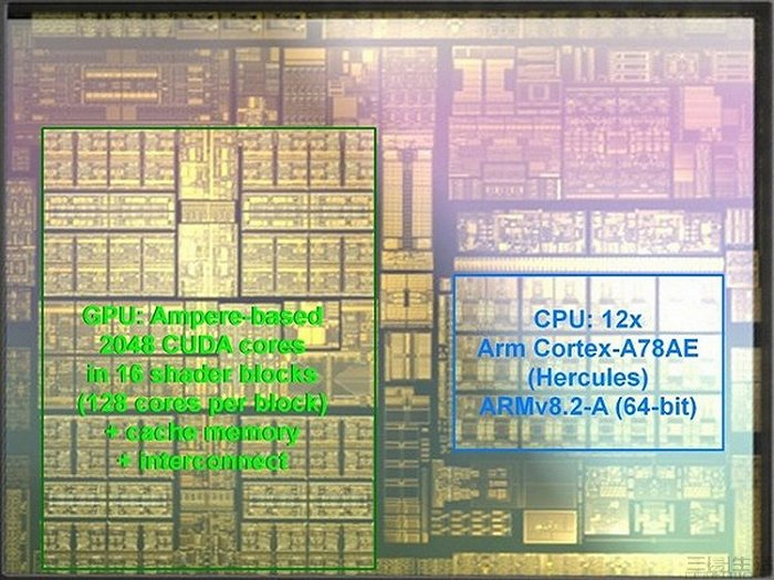而根据NVIDIA公布的官方资料显示,原版(也就是T234型)Orin芯片基于7nm制程,其内部集成了多达12颗 ARM Cortex-A78AE大核心CPU。但更厉害的是,它还包含了一个2048流处理器的Ampere架构集成GPU。