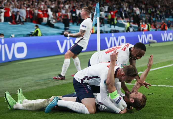 在7日举行的2020欧锦赛半决赛中,英格兰队2:1击败丹麦队,队史首次打入决赛。整场比赛,“足球回家了”的歌声响彻伦敦温布利大球场。英格兰人,距离梦想从未如此之近。为了这个时刻,他们已苦心磨剑十年。