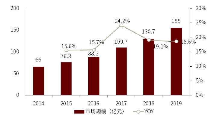 图表:2019年国内卫星遥感市场规模为155亿元