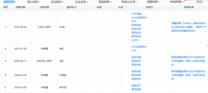 在资本领域,国产美瞳品牌成为了新的“香饽饽”之一。据小C在天眼查搜索发现,2018年以来,4inlook、CoFANCY可糖、Moody、KILALA等多个中国美瞳品牌陆续完成了融资。其中Moody的融资达5轮,由此可见资本对美瞳的“宠爱”。
