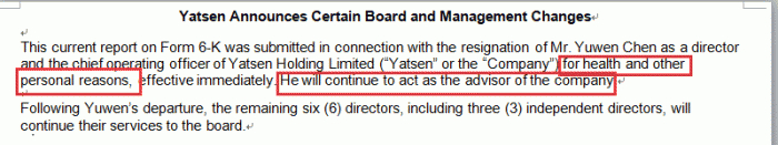 据悉,纽交所上市公司逸仙电商(NYSE:YSG)在2021年6月30日于官网发布了一则有关董事会及管理层变动的公告。
