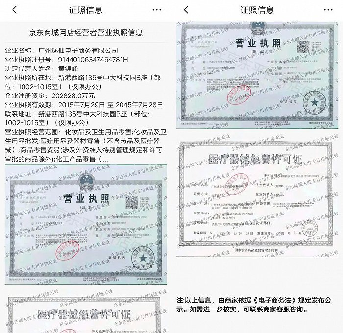 且完美日记美瞳产品能够成功入驻京东天猫,已然证明其具备医疗器械注册证和经营许可证。