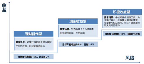 第一类是理财替代型,追求年化收益3%-5%,最大回撤目标1%-2%。