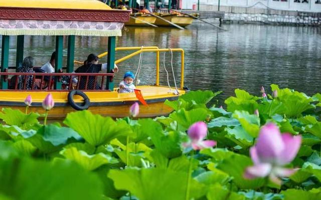 北海公园、紫竹院公园开启荷花摆渡航线,由白洋淀老船工摇橹游湖,为游客近距离赏荷带来别样感受。