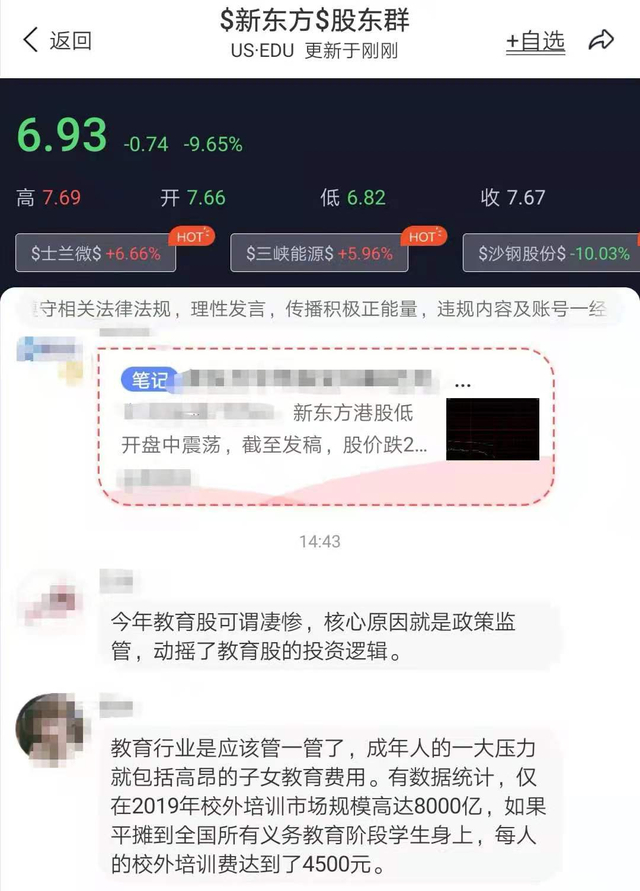 引发股价下挫的直接原因与一则消息有关。7月7日上午,中消协曝光了虚假宣传事件,并点名了新东方等校外培训机构。
