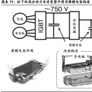 同时,在薄膜电容还没有混合动力车使用实绩的 2000 年代早期,松下率先 和上游材料公司合作开发了新型 OPP 薄膜电介质材料。为了满足汽车动力系统 的标准,薄膜电容外包装的树脂材料也与树脂材料厂商进行了合作开发。