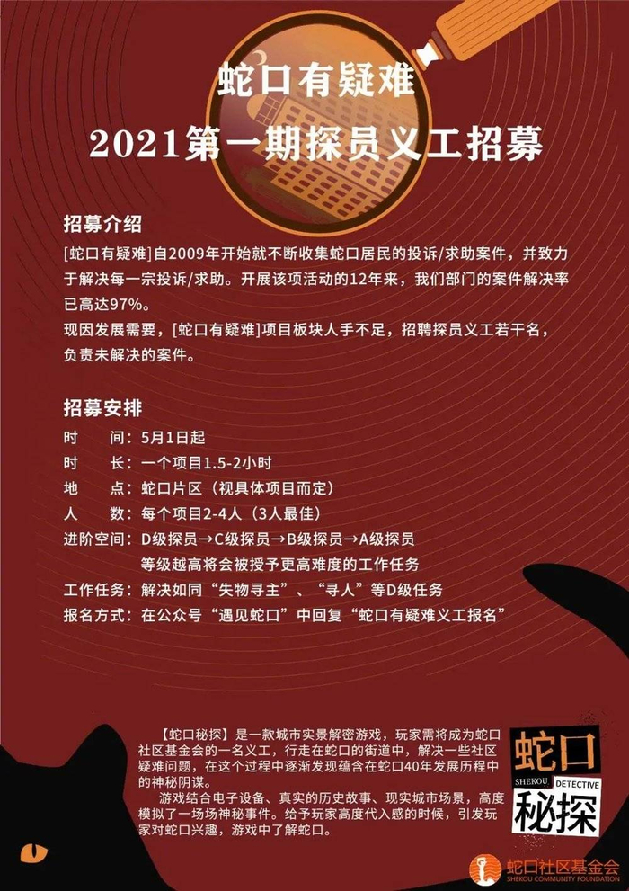 目前已进入公测阶段的“蛇口秘探”就是其中一个新颖的案例,令人感到欣慰的是,这里的游戏剧本是基于协助街道办解决民生案件问题而创造的。在游戏中,年轻人们本质上是边参与义工项目,边了解蛇口当地的历史人文。