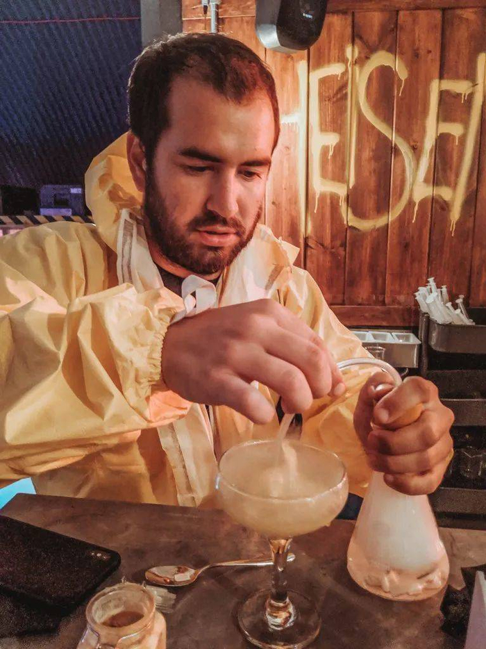 一些经典的影视IP也在泛化城市实景解谜的概念,用悬念重重的娱乐方式融入当代人的生活方式,也不断为旧的影视剧注入新的生命力。ABQ LONDON是全球第一家沉浸式的分子鸡尾酒吧,位于伦敦的哈克尼区,这里以其高度还原《绝命毒师》的实验室场景而闻名,它们在房车里打造了一个沉浸式的鸡尾酒酒吧空间,让消费者可以身着老白同款实验服步入,在工作人员的指引下用化学试剂、玻璃烧杯与注射器调配出一杯充满谜团色彩的饮品。