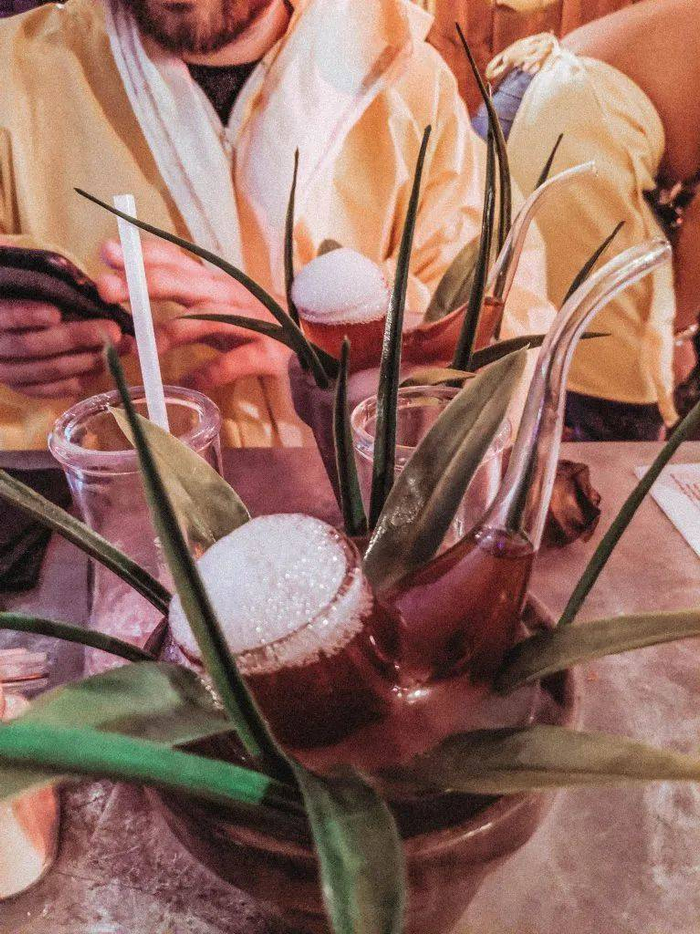 “420鸡尾酒”——其实是由波旁威士忌、烤布朗尼雪利酒、香槟泡沫、干冰和叶子装饰品烹调(Cock)而成。