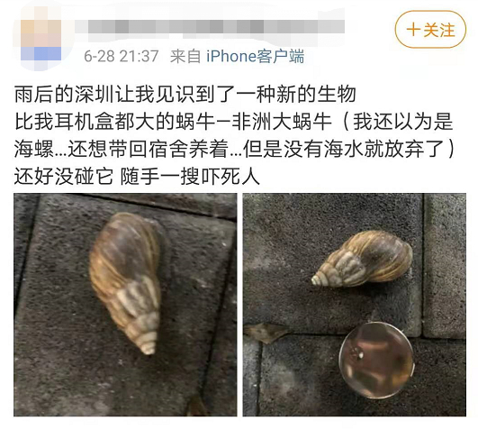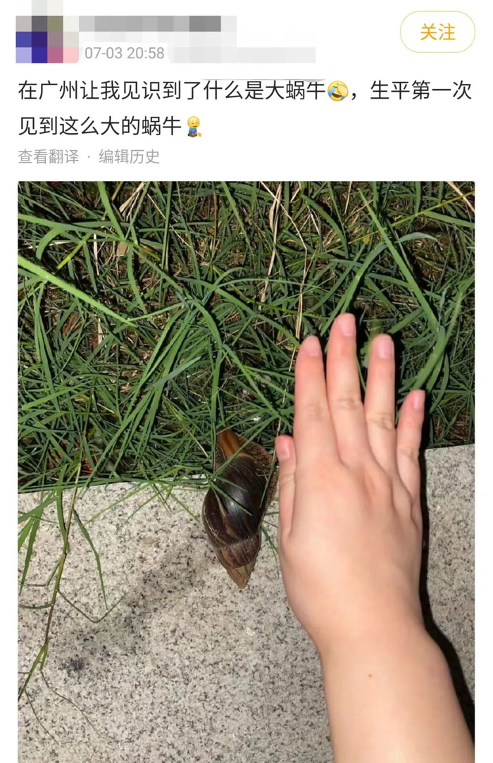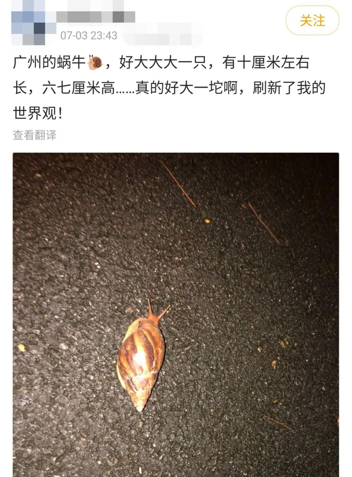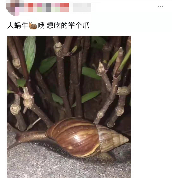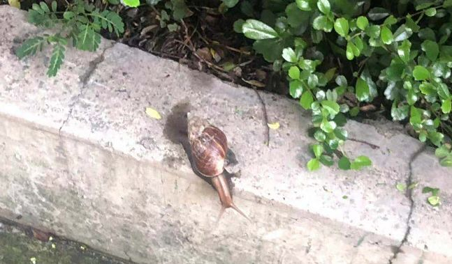 雨后出没的这种大蜗牛,名副其实,叫 非洲大蜗牛 ,又称褐云玛瑙螺。它是世界上最大的蜗牛,老家在非洲东部。
