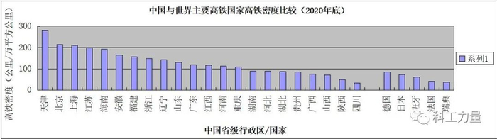 截至2020年底,中国建成的高铁总里程达到3.8万公里,约占世界高铁总里程的69%,而且仍在持续扩张。在高铁的密度上,中国经济发达地区已不在高铁网络发达的日本和欧洲国家之下。