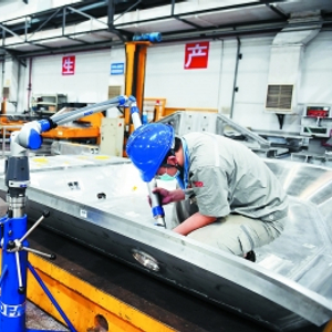 南京雷尔伟新技术股份有限公司生产车间内,工作人员正在生产高铁轨道车辆车体部件。 南报融媒体记者 崔晓摄