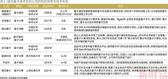 国内的初创公司,除了已上市的国盾量子(688027),还包括本源量子、启科量子、问天量子等(表3)。