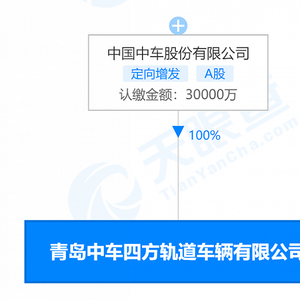 7月1日,青岛中车四方轨道车辆有限公司在青岛挂牌成立。据天眼查APP显示,公司注册资本3亿元人民币,法定代表人为兰玉贞,中国中车股份有限公司控股100%。