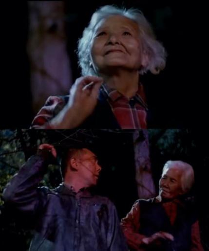 如果说《阳光》一次次打破观众心理预期的叙事是一种戏弄,那么《太阳》中前后矛盾、漏洞百出甚至魔幻的故事则直接构成了对观众的冒犯。关于疯妈与丈夫李不空初遇的两种截然不同的讲述:“那年学校请‘最可爱的人’来做报告,你爸来了……台下有上千人,他只看见我,只盯着我,只给我一个人做报告”与“那年,我骑着自行车,在河堤上摇摇晃晃,你迎面走过来,穿这一身干净的军装”,两种叙事孰真孰假,姜文并未给出答案。第二个故事中的“摸屁股”事件更是让观众陷入了持续的困惑中:梁老师究竟有没有摸女子的屁股?诚然,梁老师的回忆中确有手摸上女子屁股的画面,但若我们细细观看,却会发现这段回忆看似可靠,实则漏洞百出:坐在台阶上看电影的老太太,在与梁老师打了一个照面后,变成了另一个人;被梁老师“摸屁股”的女子,匆忙回首的瞬间已不是原先的面孔,重重的错觉、幻想使整段回忆显得格外虚无与荒诞,真相亦在其中迷失。
