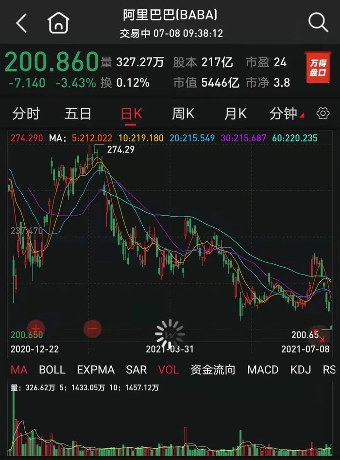 7月8日晚美股开盘后,拼多多股价一度跌超6%,阿里巴巴跌超近3%。